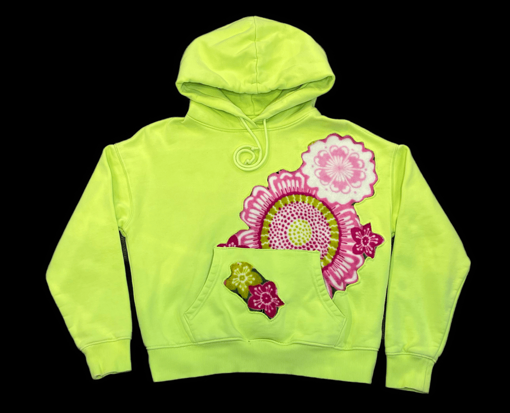 Upcycled lime hoodie with floral blanket cut outs